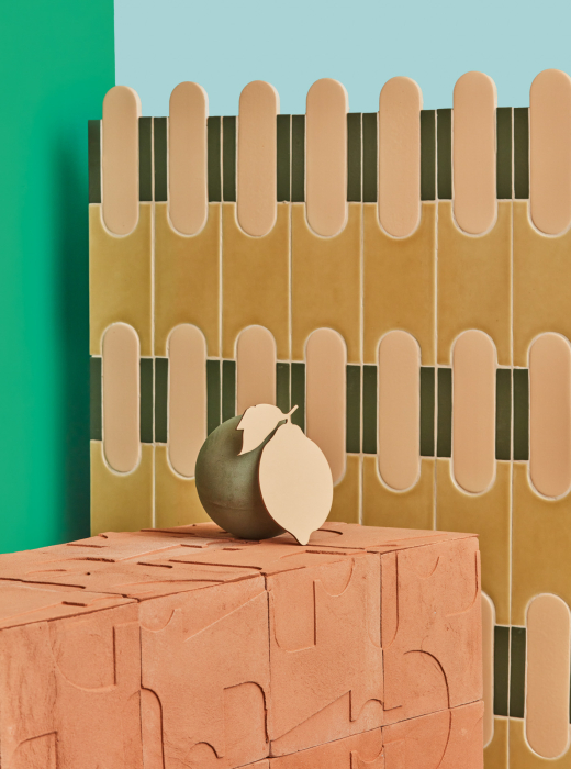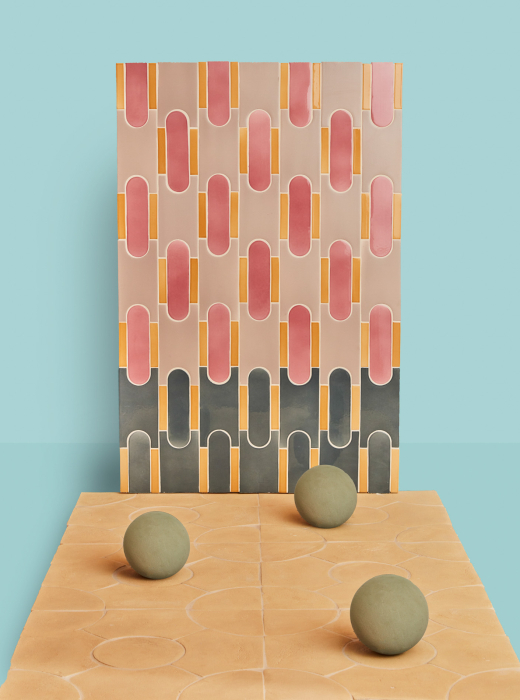 The absolute protagonist is variegated cotto, alternating with the different colors of traditional earthenware in a game of harmonious silhouettes, a seductive contrast of straight and curved lines. The play of textures and sheen contributes to generate a new alphabet of imagery.