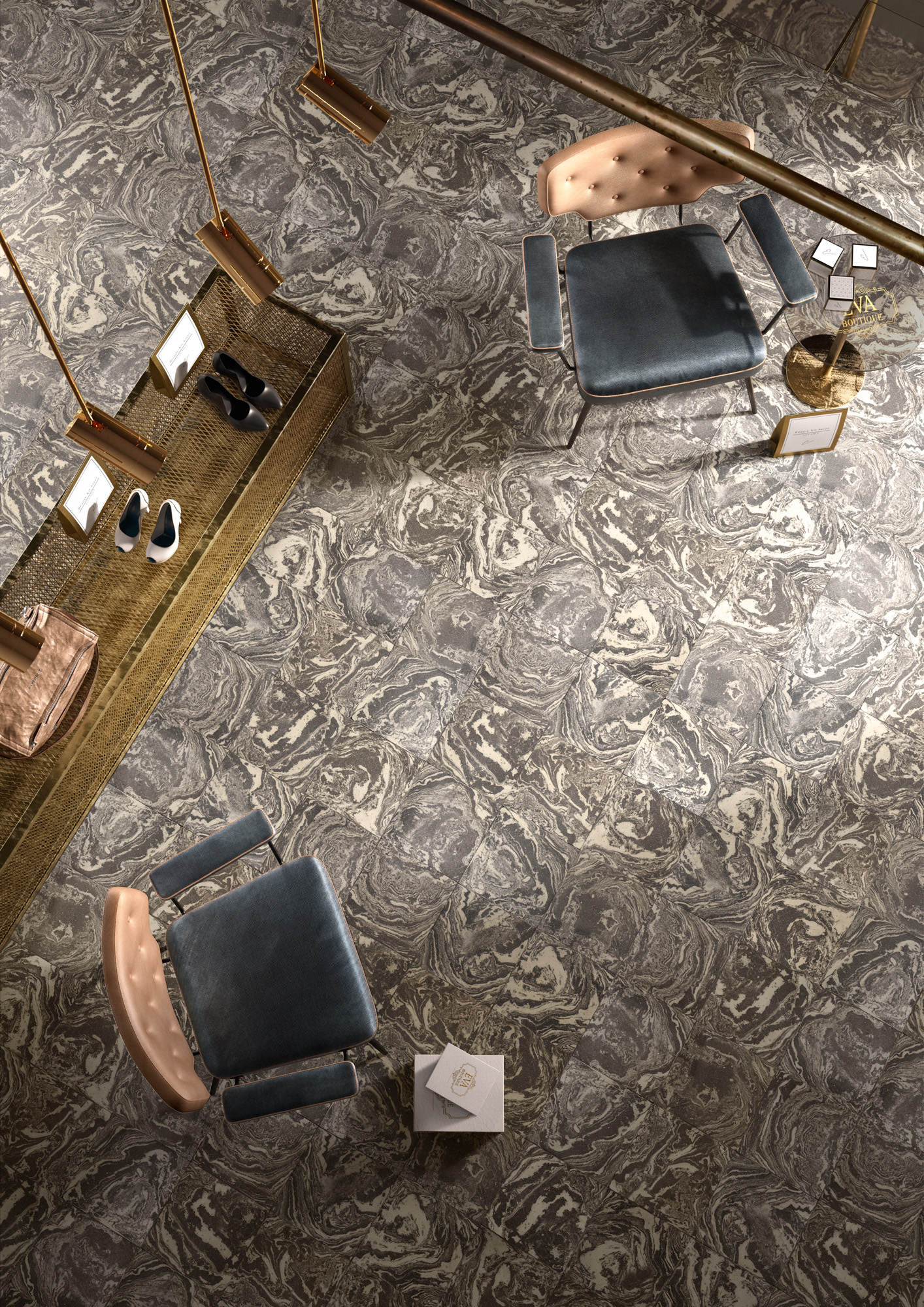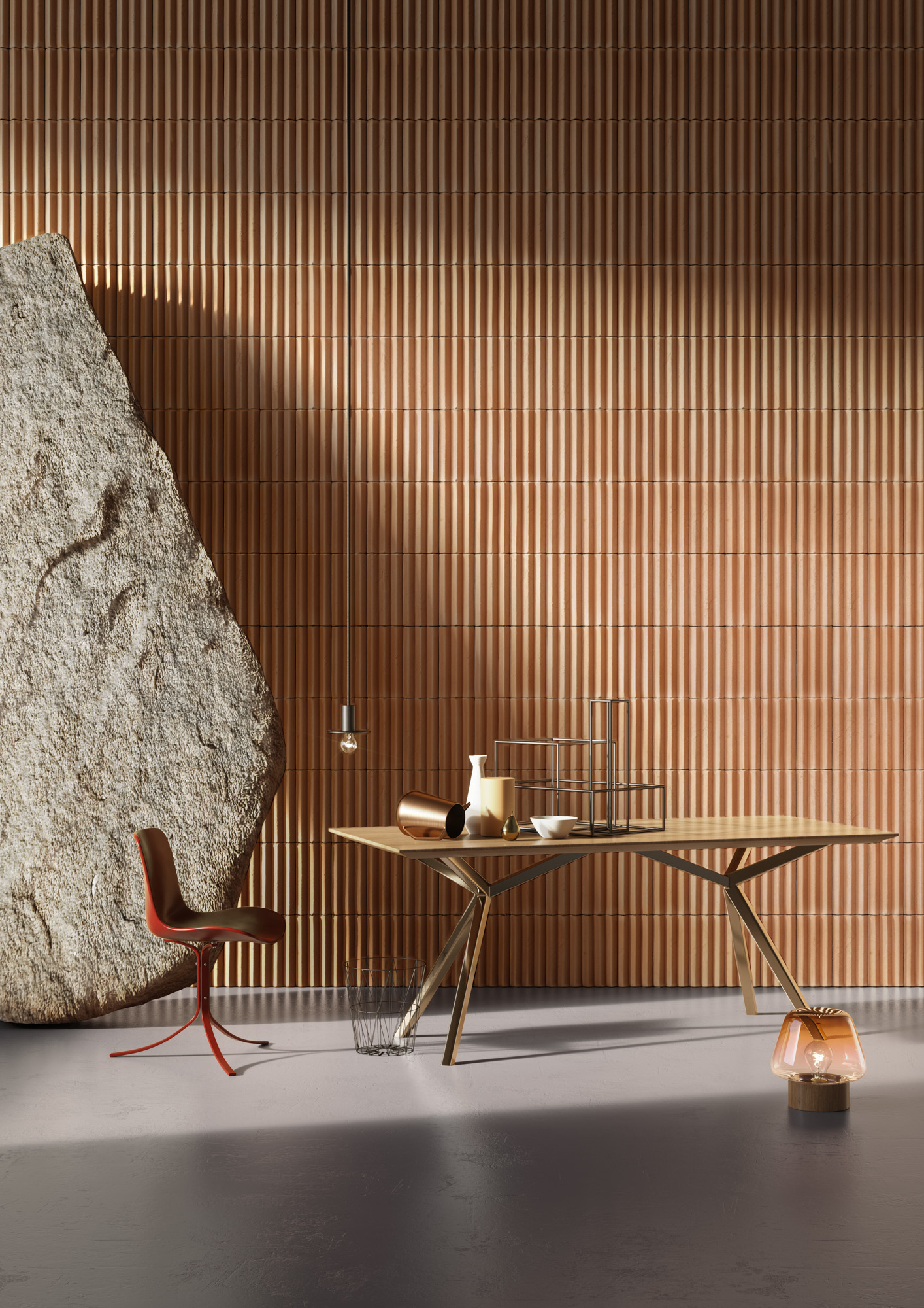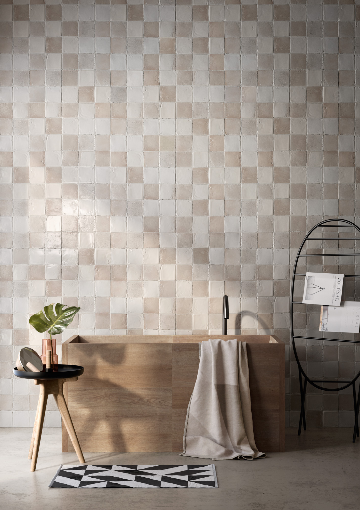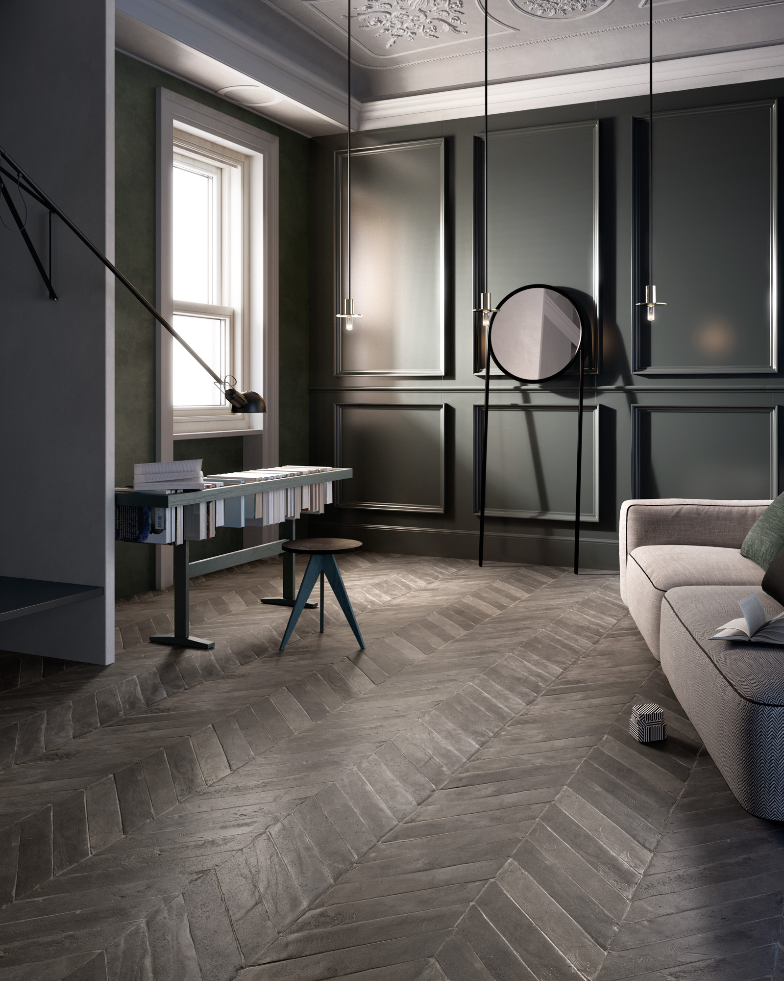 The strips, squares and rectangles take on expressive impact with the organic image of variegated cotto, the sheen of glazed cotto, and the natural allure of traditional finishes. A repertoire of continuing and concrete references, crossing the centuries with style and nonchalance.